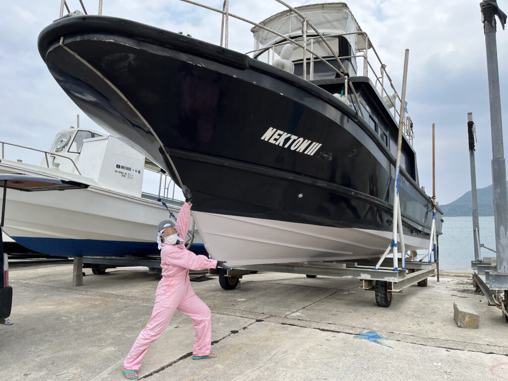 シーズンに向け、ネクトンの船底ペンキ塗り完了しました!