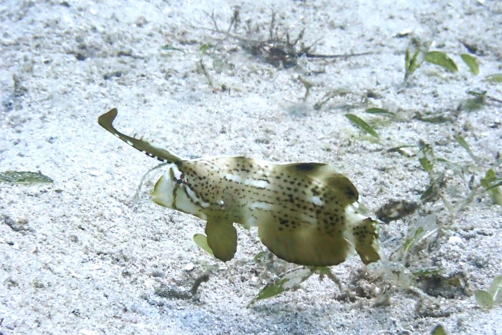 ゆらゆらと枯れ葉の真似をして泳ぐ姿は優雅に見えますが